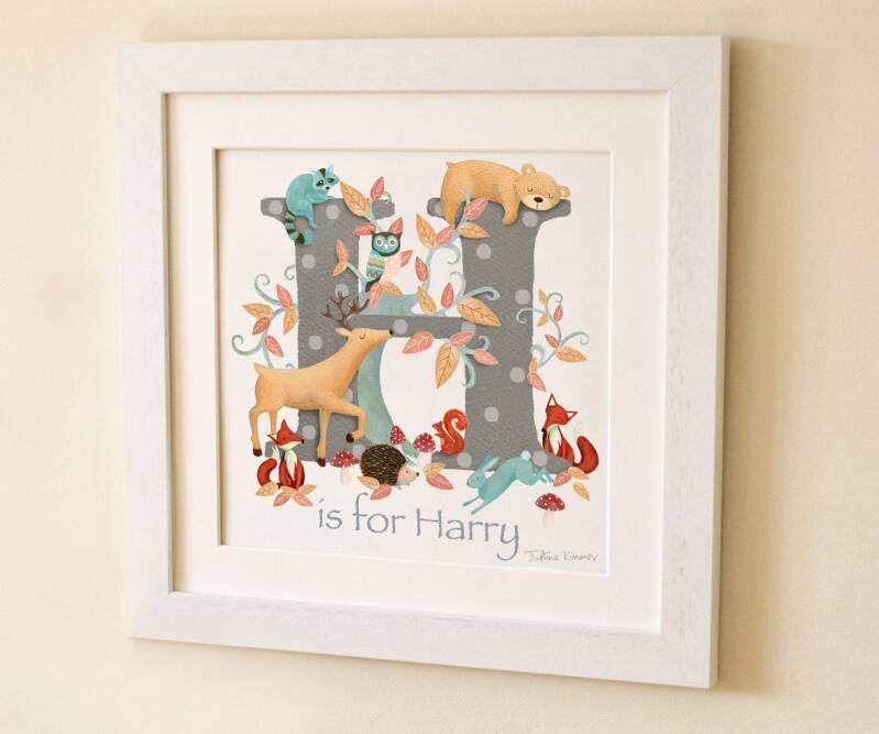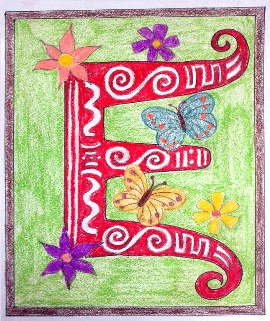 Schrijf je rest van je naam in handletteringstijl helemaal uit op een manier die mooi past bij de miniatuur, waardoor het één geheel wordt. Zorg ervoor dat de letter allemaal ongeveer even groot zijn. Je maakt de letters mooi door ze te vormen in een bepaalde stijl. Dit mag in eenvoudige vormen en kleuren.