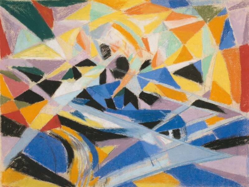 Je kunt kiezen tussen oliepastel en gewoon pastel - probeer even welk krijt je fijner en mooier vindt. Werk het geheel uit in kleur, kijk goed naar de voorbeelden uit het futurisme. Kijk goed naar voorbeelden van afbeeldingen uit de schilderkunst van het futurisme.