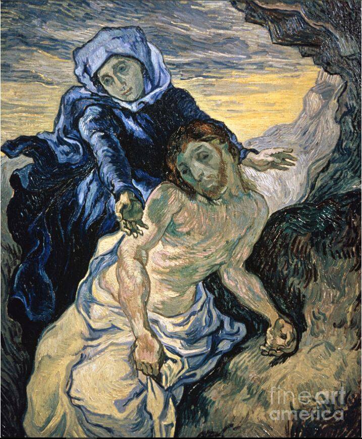 5. Wat is de overeenkomst tussen een Piëta en De goede Samaritaan? Hoe kun je de overeenkomst met een piëta en dit werk van Van Gogh uitleggen?